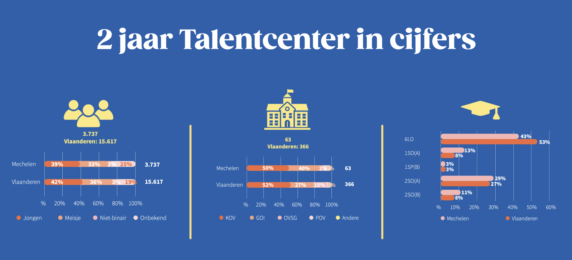 - In Vlaanderen bezochten sinds 2023 meer dan 15.600 leerlingen een Talentcenter, uit 366 verschillende scholen.