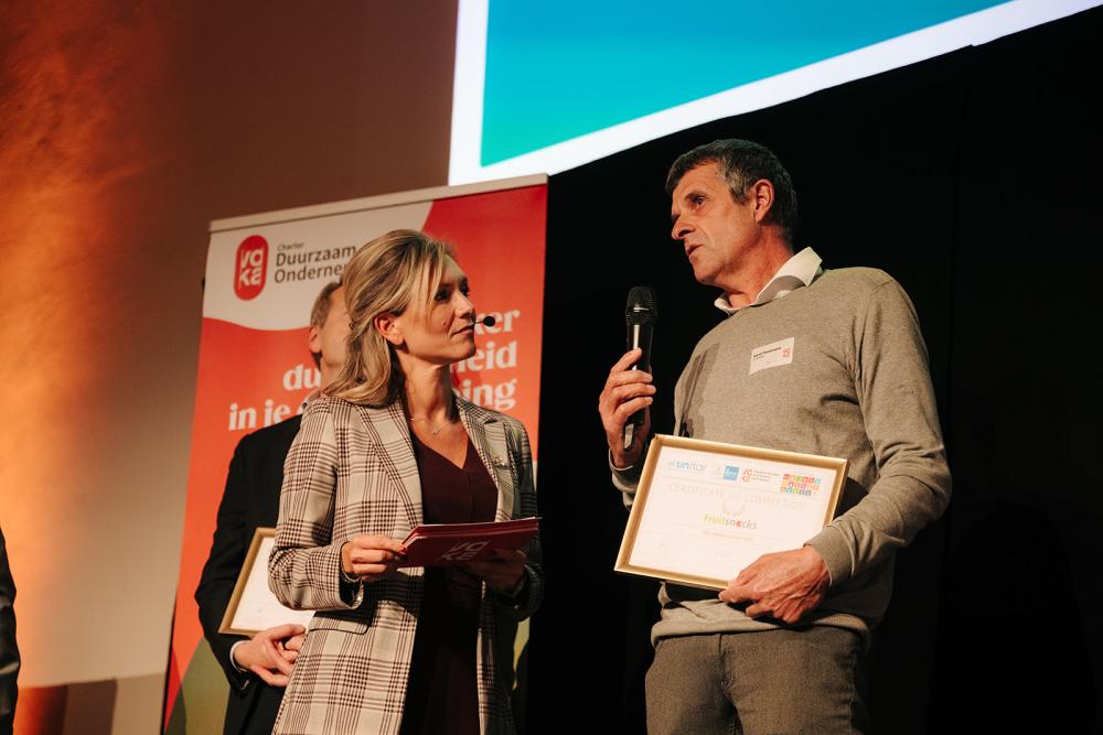 In 2025 kreeg Fruitsnacks, het Haspengouwse familiebedrijf dat fruitpakketten levert aan bedrijven en scholen, het SDG Ambassador-label van de Verenigde Naties. De erkenning bekroont hun duurzame groeipad binnen het Voka Charter Duurzaam Ondernemen (VCDO).