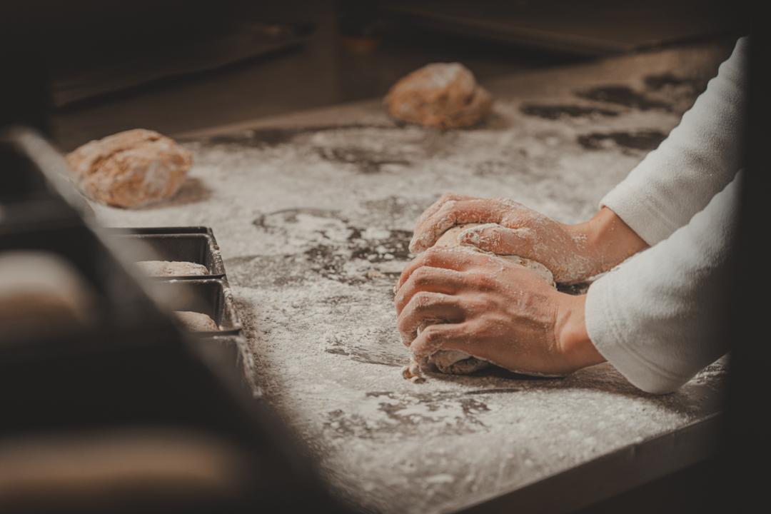 De warme bakker kneedt deeg zoals een masseur een wielerlijf masseert: hij duwt, voelt, streelt als het moet. Deze handen zijn een bewijs van goed gedrag en kneden. Knoestig, eelt van het vele rollen, gerafeld door het bloem.