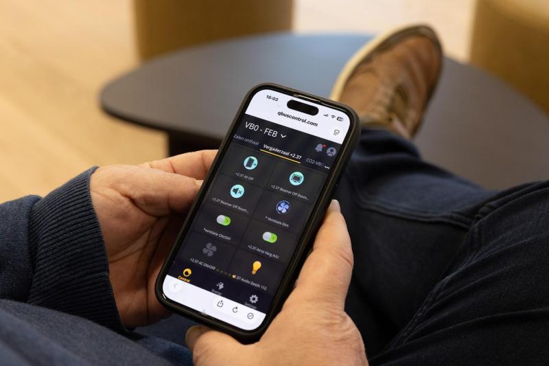 Het VBO-gebouw met negen vergaderzalen en meer dan honderd werkplekken gaat terug tot Expo 58 en is de voorbije vijftien jaar stapsgewijs gerenoveerd. “Dat is een van de troeven van een Qbus-installatie: het is niet nodig om alles in één keer te integreren tijdens een nieuwbouw of verbouwing”, vertelt service manager Nico Tack. “Bij elke nieuwe fase voegt de installateur een extra controller toe aan het domoticasysteem, om het pand stapsgewijs slimmer te maken.” Deze flexibiliteit maakt ook dat Qbus-oplossingen altijd compatibel zullen blijven met nieuwe toepassingen, wat belangrijk is in een wereld waarin noden, technologie en wetgeving continu evolueren.