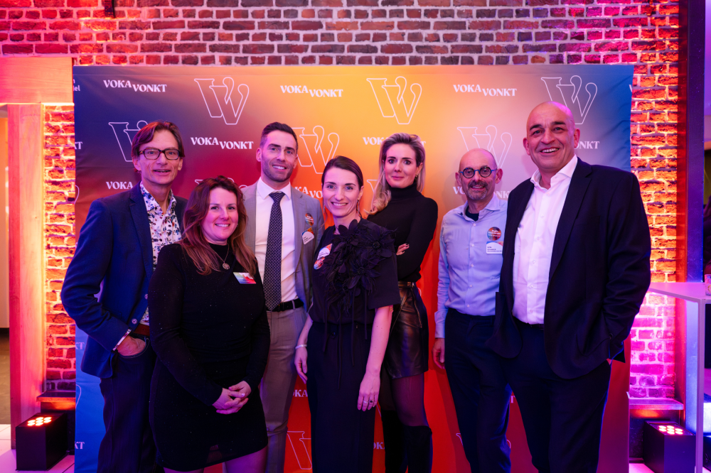 V.l.n.r Wim Pannecoucke (belangenbehartiger Voka-KvK Vlaams-Brabant), Peter Penasse (regiovoorzitter, Degroof Petercam), Erika Liveyns (relatiebeheerder Voka-KvK Vlaams-Brabant), Eveline Anckaert (Lydian), Ilse Demol (Sterckx - Desmet) en Kris Croonen (NC LAW).