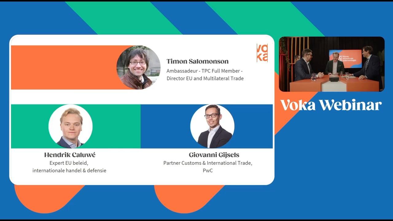 In dit webinar brengen experten Hendrik Caluwé (Expert Europees beleid, Handel en Defensie, Voka), Giovanni Gijsels (Partner, PwC) en ambassadeur Timon Salomonson (Directeur Handel bij het DG Europese Zaken, FOD Buitenlandse Zaken) je helder en gestructureerd op de hoogte van de laatste stand van zaken. We analyseren de impact voor Vlaanderen en de Europese Unie, en vertalen we de complexe Amerikaanse regelgeving naar concrete aandachtspunten en praktische strategieën voor jouw onderneming.
